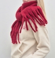 Об’ємний шарф насиченого бордового кольору — стильний акцент для зимових і міжсезонних образів. М’яка, пухнаста текстура приємна до тіла та дарує відчуття тепла й затишку у прохолодну погоду.- м’який та теплий матеріал