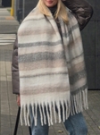 Теплий та м'який об'ємний зимовий шарф зі смужками в бежевих тонах.