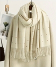 Зимовий теплий шарф молочного кольору з різнокольоровим горошком, стане чудовим доповненням до осінньо - зимового сезону.